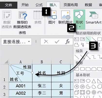 接下来说说制作包含三个元素的斜线表头。
