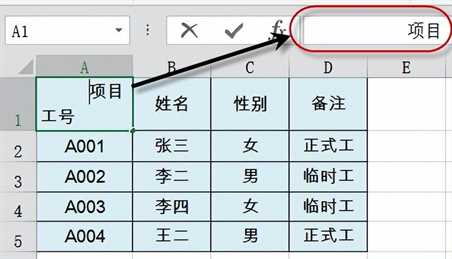 在A1单元格输入“项目”,然后按住Alt键不放,按回车。
