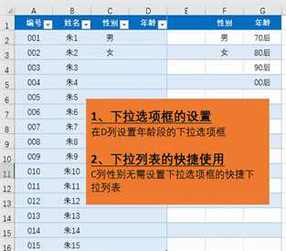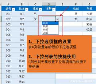 在下图中,需要在D列设置年龄段的下拉选项框。