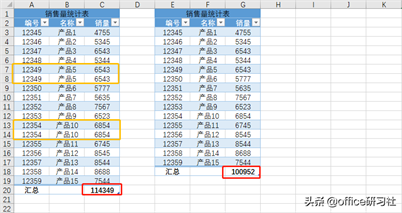 如下图:产品5和产品10数据重复,最后汇总部分就出现了错误。