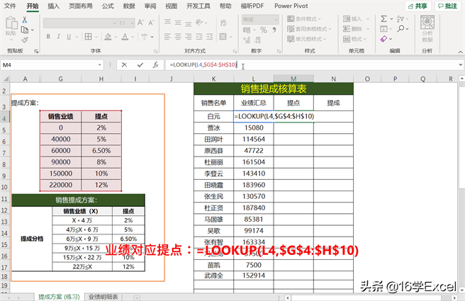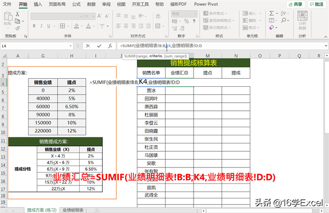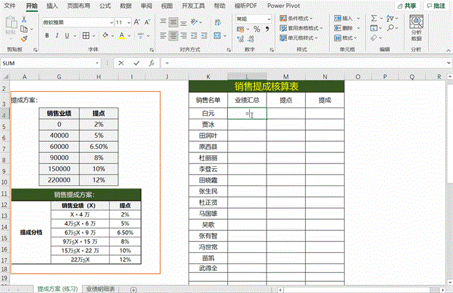 步骤一、分析提成方案(业绩区间不同提成点不同)