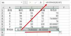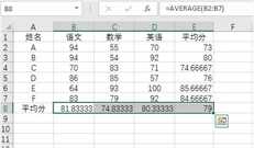 最佳答案打开EXCEL表格。第一种方法:在E2单元格输入公式=average(B2:D2)双击填充柄,向下复制公式同理,在B8单元格输入公式=AVERAGE(B2:B7),右拉填充柄,向右复制公式第二种方法:选中E2:E7区域,依次点击公式,自动求和,平均值如下图所示同理: 选中B8:E8区域,依次点击公式......