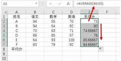 选中E2:E7区域,依次点击公式,自动求和,平均值