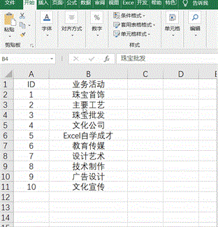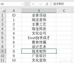 我们在一个空白列,输入我们需要筛选的字段名字,然后在其下方输入4个条件,分别是文化、艺术、传媒、珠宝然后我们在数据选项卡下,使用高级筛选功能,条件区域选择我们输入的这部分即可,操作的动图如下所示: