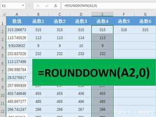 rounddown函数刚好与roundup相反,它是向下舍入,表达式和用法与上面两个函数是一样的,因此无需再多加介绍。
