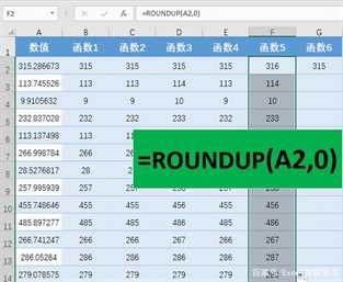 如下图公式=roundup(a2,0)即表示a2值的整位数向上取值,等于316,如果第二参数是1,公式为=roundup(a2,1),那么结果就等于315.3,小数点后一位向上取值,然后截取掉之后的数字。