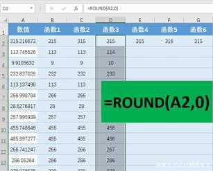 round函数是四舍五入函数,有两个参数,完整的表达式为:=round(值,指定位数舍入),第二个参数的用法与trunc函数相同,也可以是负数和正数,和零,只不过一个是截取,一个是四舍五入。