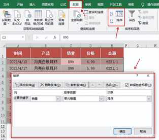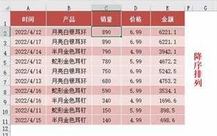 在数据表中,需要以销量为关键字进行降序或升序的排序。我们通过排序方式的不同操作,来分别介绍。