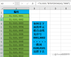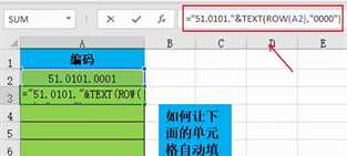 我们在编辑栏中输入公式:=”51.0101.”&TEXT(ROW(A2),”0000″)