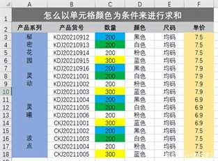 而以单元格颜色为条件进行求和,是在此文基础上更进一步的学习。我们看一下表格数据图: