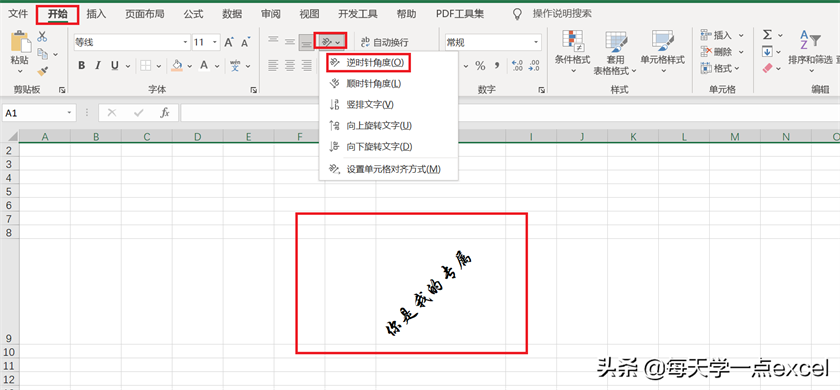 开始——对齐方式——方向——逆时针角度,根据自己喜欢可以随意调整方向。