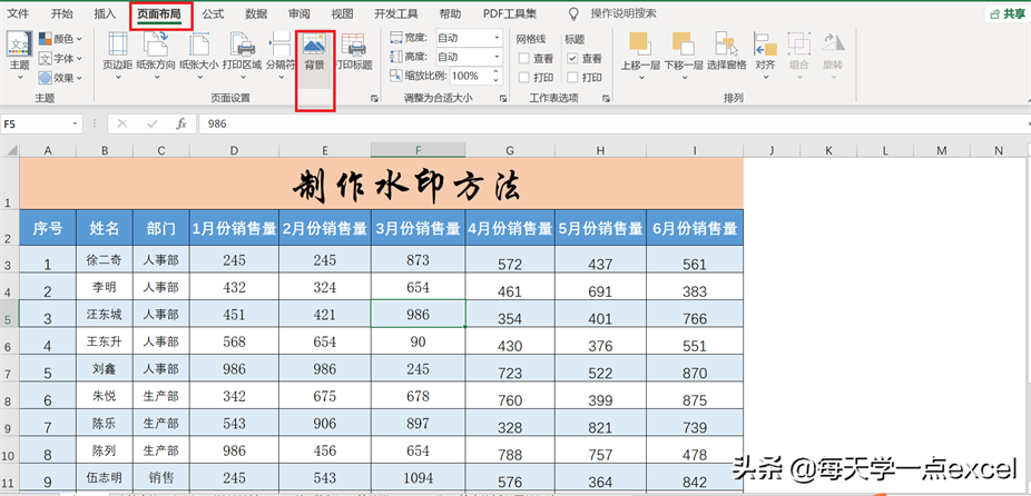 表格中添加水印完成了,添加后的效果如下图所示(实例表格中的填充色我给去掉了,这样水印显示的更明显些)。