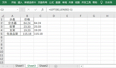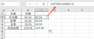 这时可以利用LEFT函数来提取,在单元格中输入公式=LEFT(B2,LEN(B2)-1),将数字提取出来。