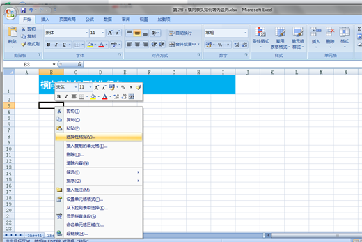2、打开一个空表格,单击右键选择“选择性粘贴”;