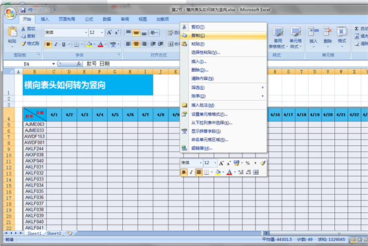 4、点击确定后表格就把原来横向的内容转变为竖向了,而竖向的格式内容就转变为横向,然后再适度调整即可完成。