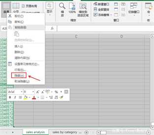 选中第201行,按下CTRL+SHIFT+↓的快捷键组合,会自动选取从201行到表格默认最后一行的单元格区域,然后右键点击任意单元格,在弹出的界面中点击“隐藏”。