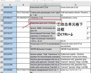 ①·点击数据列的任意单元格,然后鼠标双击单元格的下边框,系统会自动跳转到该列最后一个数据单元格。