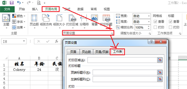 Step2:在“布局”选项卡里面,打开“页面设置”对话框,在弹出的对话框中选择“工作表”选项卡如下图所示: