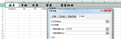 Step3:在“顶端标题行”后面的文本框点击一下,然后回到Excel工作表中,点击你需要设置的标题行即可(可以选择多行),然后单击“确定”按钮。如下所示: