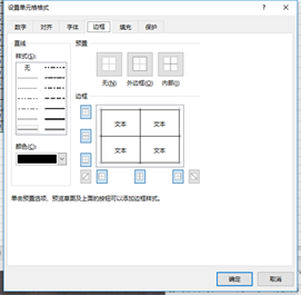 步骤06设置表格边框。全选表格,打开“设置单元格格式“对话框,在“边框”选项卡中,设置好表格的外框线和内框线。
