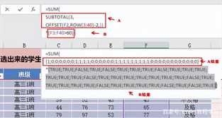 SUBTOTAL(3,OFFSET(F2,ROW(3:40)-2,))函数公式的结果是1和0组成的数组,即图中A结果,因为row函数的结果是数组,那么offset进行偏移引用的结果也是一个数组,在套上subtotal进行计数,得到的结果也同样是一个数组。