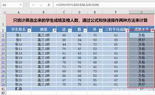 我们直接进入正题,在下图中,已经对班级进行了筛选,现在需要对筛选后的高三1班,进行成绩水平为及格以上的人数统计。