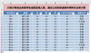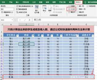 但这个结果只是进行班级筛选后的单元格个数,还没有对成绩水平进行条件设置,因此我们需要在成绩水平列进行一次筛选。