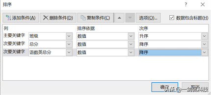 依次在“添加条件”中添加所需要的排序关键字,最后如下图所示。