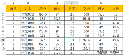 按【确定】,成绩就可按设想的进行排序了,如下表。