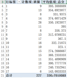 (1)选中数据表中任一单元格,插入数据透视表,在右边的“数据透视表字段”中,将“班级”拖到“行”区域,再将班级、总分依次拖放到“值”区域。得到如下的数据表。
