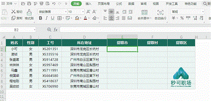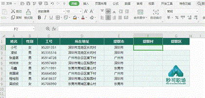 如下GIF,要求从员工表中提取地址中所对应的市。