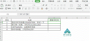 如下GIF,要求从杂乱的文本中提取每行的手机号码,当然有个相同的就是手机号码都是11位数的。