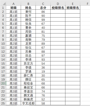 计算班级排名