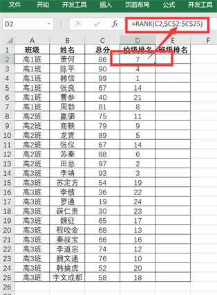 (二)计算班级排名