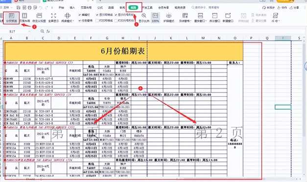 首页我们可以通过【视图】-【分页预览】查看表格数据格式,通过下图我们可以看到,这个表格比较分成了两页才能打印