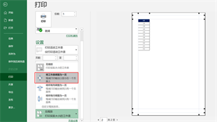 在打印预览设置选项汇总,将无缩放调整为将工作表调整为一页。