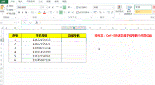 操作三:Ctrl E快速隐藏手机号码中间四位数