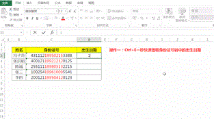 操作一:Ctrl E一秒快速提取身份证号码中的出生日期