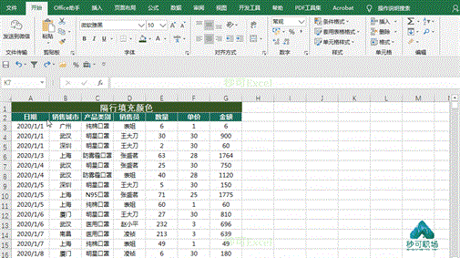 平时套用的格式都是隔行填充,如下GIF,我们需要每隔3行,也就是第4行填充背景色,该怎么操作呢?