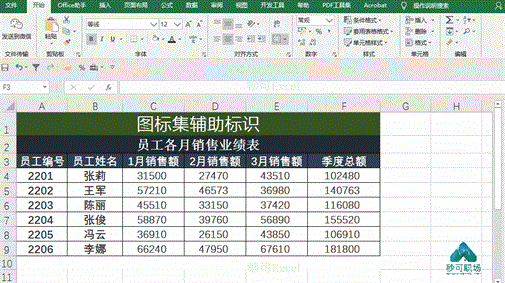 如下GIF,遇到表格中的数字需要添加图标标识时,用图标集功能可以轻松搞定!图标集中选项丰富,大家可根据实际选择。