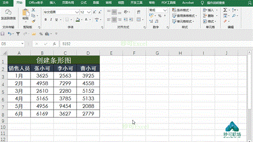 如下GIF,借助条件格式中的数据条功能,可以在单元格中创建条形图,突出显示数据清晰对比大小关系。