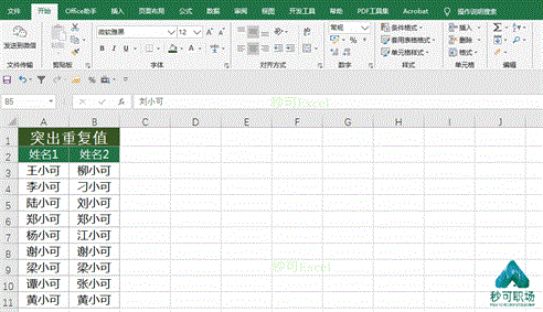 如下GIF,快速定位重复值所在位置,不必借助任何函数辅助列。