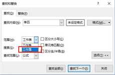 若是当前文档,含有多个工作表,查找时,别忘了选择范围为工作簿,如下所示,Excel会查找所有工作表中,含有李四的单元格。