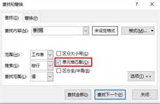 取消勾选,则表示,单元格含有查找内容即可。