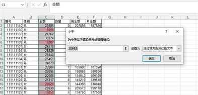 接着,如图6所示,在弹出的设置窗口中输入小于的数值,以及符合条件数据设置的颜色,即可在表格中即时预览到筛选效果。