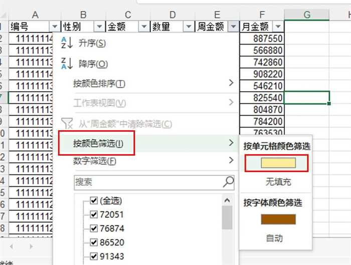 运用条件格式后的数据,可结合使用筛选功能中的颜色筛选,将数据快速筛选出来。