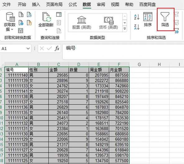 使用筛选功能前,如图1所示,需先选择筛选的数据范围,不在范围内的数据将不参与筛选。