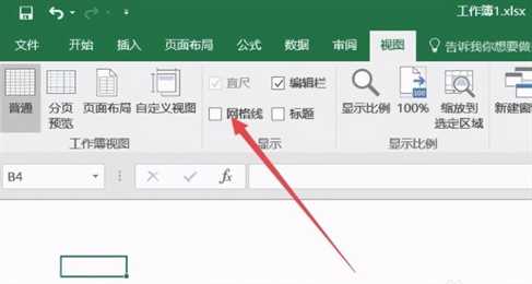 在打开的视图功能区,点击选中“网格线”前面的复选框即可。这时就可以显示出边框线了。