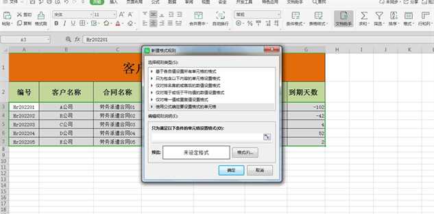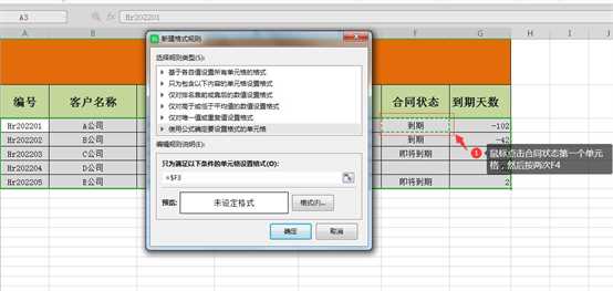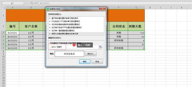 (5)设置“即将到期”状态,重复以上1-4步骤,只是在第三步时改成输入 =”即将到期”