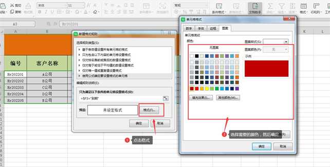(4)在下面的“格式”选择颜色,点击确定,这样到期的合同就变成了设置的颜色。